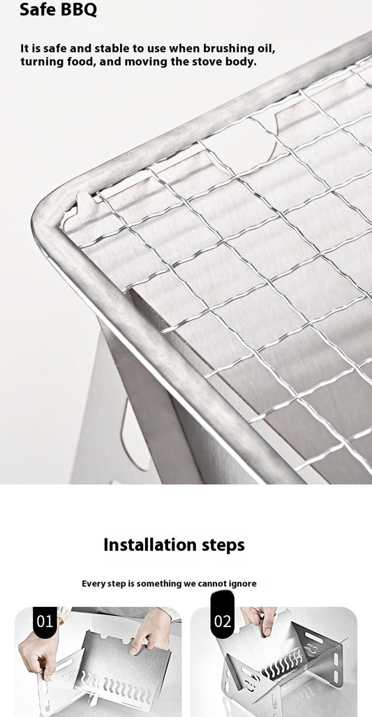 Outdoor Folding BBQ Grill Stainless Steel Convenient Card Type Firewood Mini Barbecue Grill Home