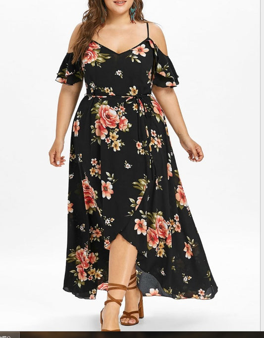 Robe à épaules dénudées pour femme grande taille, jupe longue à imprimé écharpe, grosse mm