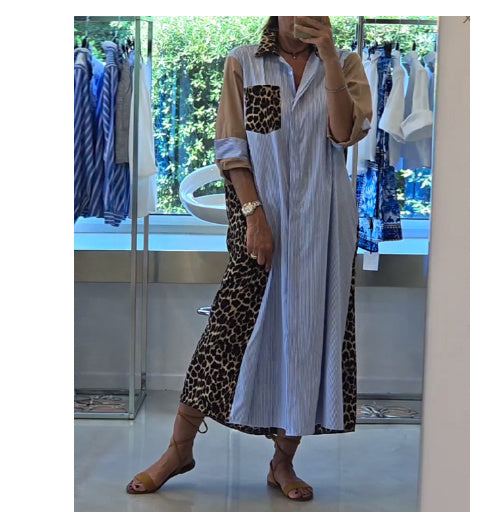 Robe chemise ample à rayures et imprimé léopard pour femme