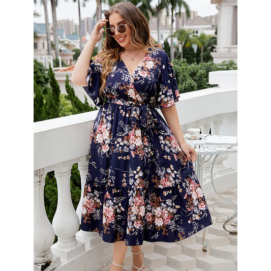 Floral Summer Beach Dress With V Neck Elastic Waist Dresses For Women
