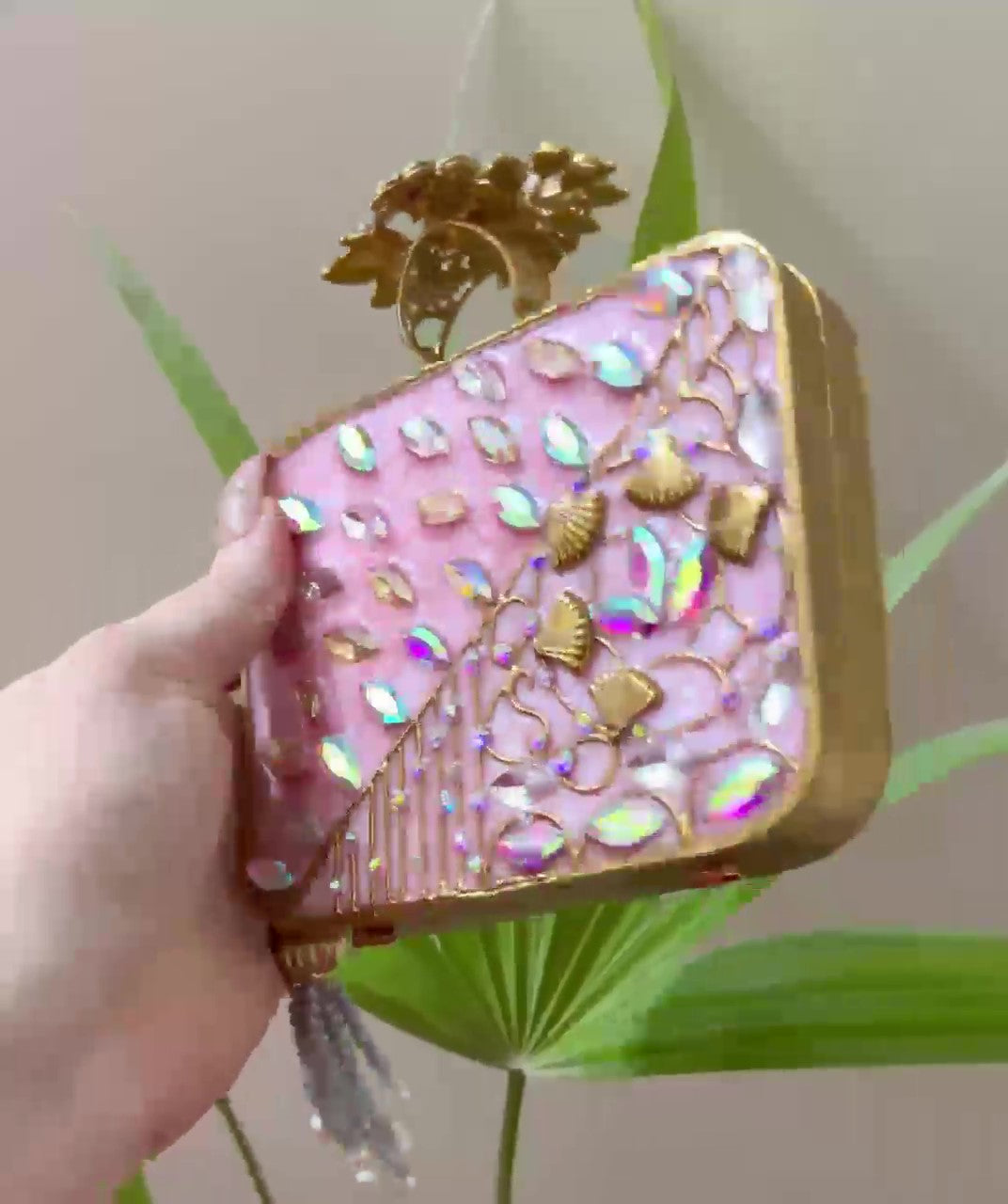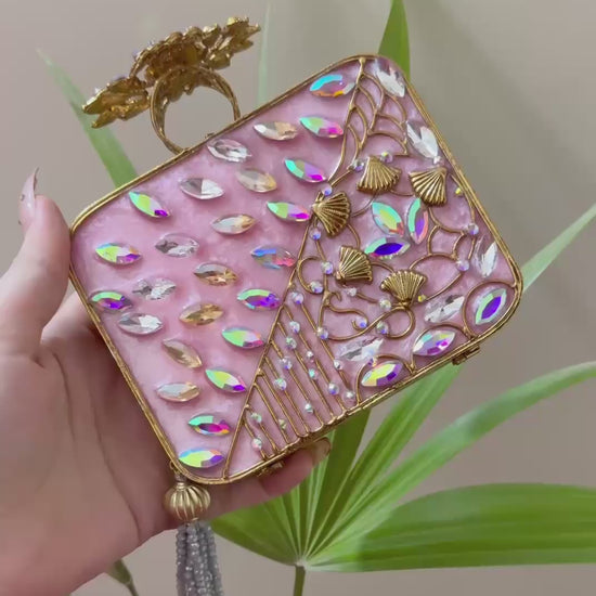 ✅ Embellished with shimmering pearls and reflective crystals