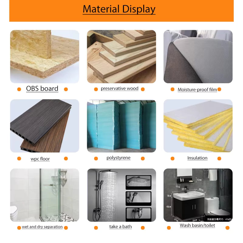 Floor: Steel Chasis+18mm MGO board+15mm Vinyl flooring/Customized