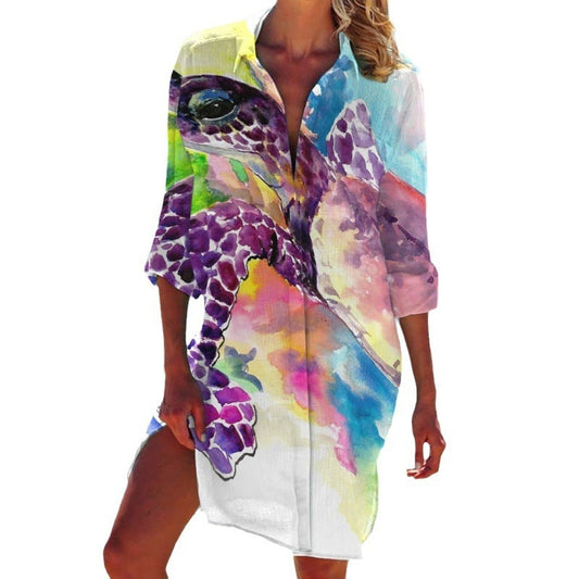 Abstract Printed Lantern Sleeve Buttoned Mini Dress